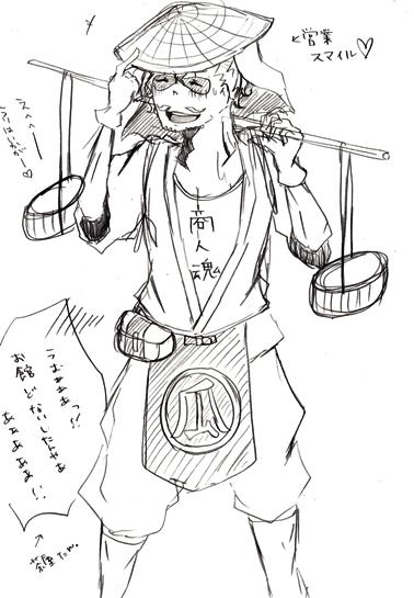 朝鮮出兵の時の…あれだよ。秀吉がやった…瓜売り百姓コスプレ大会。←